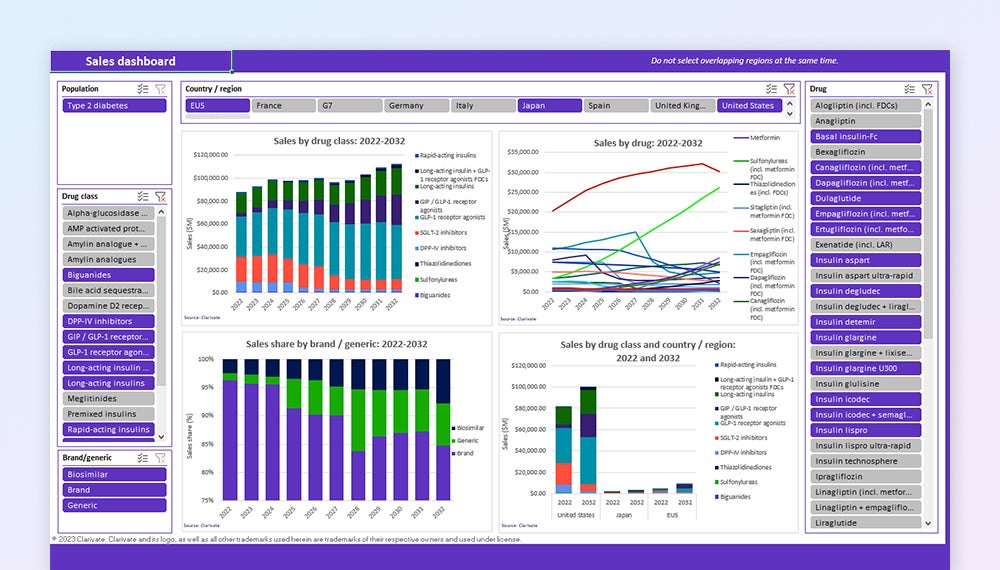 클래리베이트의 10년 연간 환산 시장 예측은 중요한 역학 데이터에 기반하여 상향식 예측 방법론을 사용하며, 브랜드와 제네릭별로 세분화된 주요 치료제의 의약품 수준 판매 및 환자 점유율을 제공합니다.