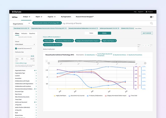 - Analyze and evaluate using the full reporting capabilities within InCites Benchmarking & Analytics.